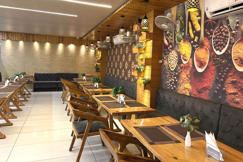 Elegantly crafted in an ancient Indian architectural style, the restaurant offers a warm and inviting ambiance that adds a regal touch to your dining experience. With seating for up to 60 guests, it is ideal for family meals, intimate dinners, or group celebrations.