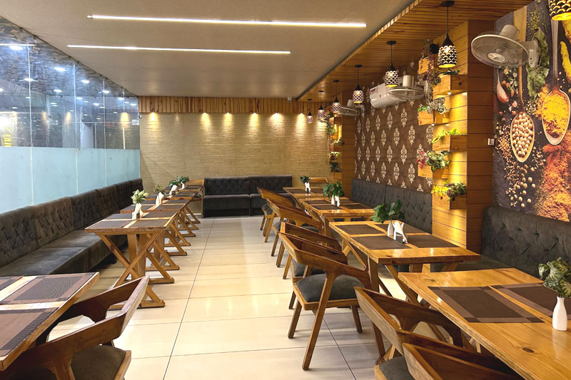 Elegantly crafted in an ancient Indian architectural style, the restaurant offers a warm and inviting ambiance that adds a regal touch to your dining experience. With seating for up to 60 guests, it is ideal for family meals, intimate dinners, or group celebrations.